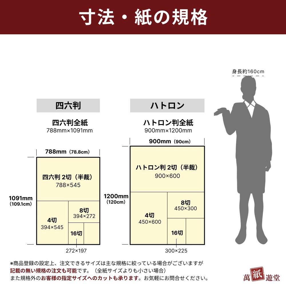 【注意】全紙(788mm×1091mm)・A判全紙(625mm×880mm)ご購入の場合、5枚までのご発注は巻いた形でお届け致します。
