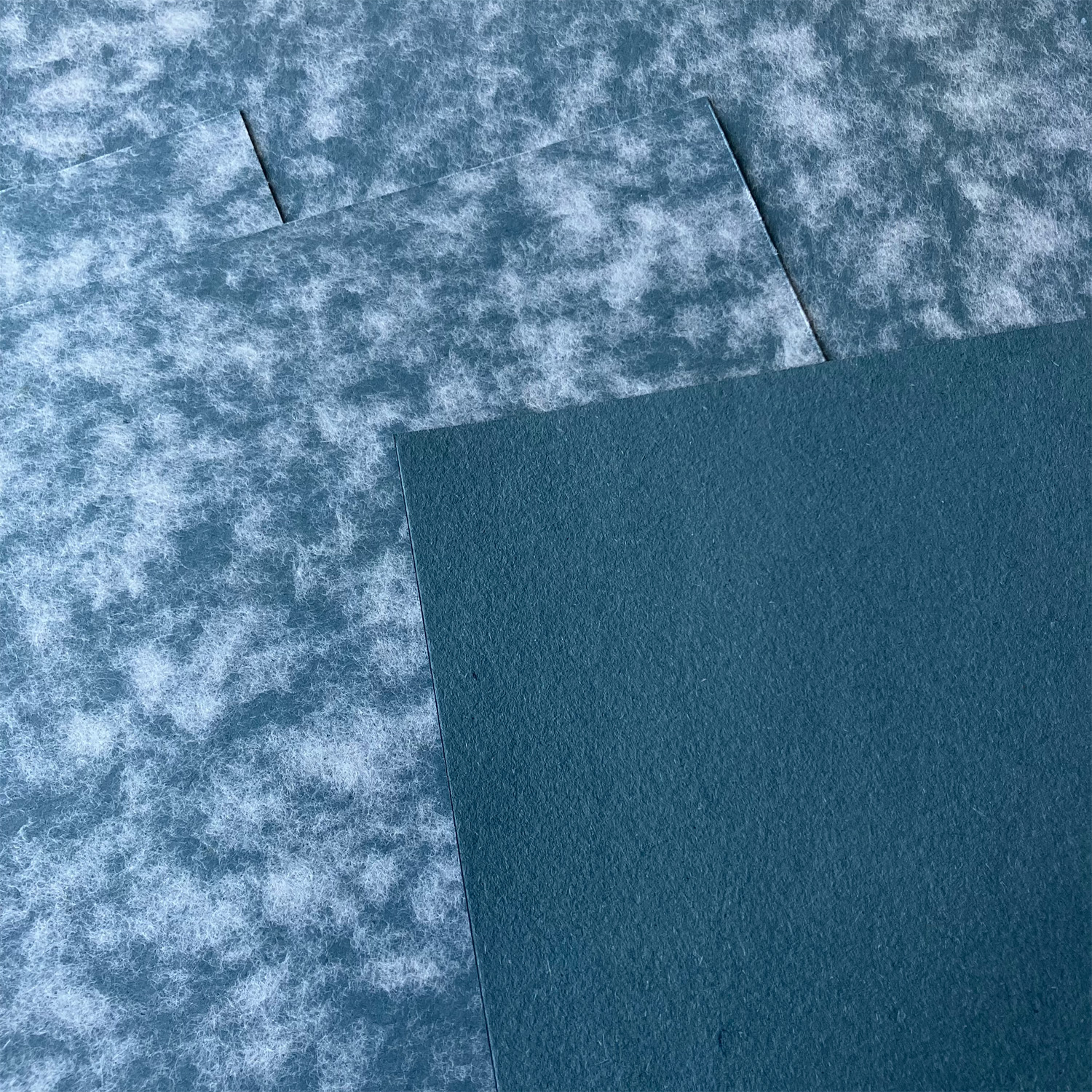 ※弊社では、畳んだ状態で入荷した全判を伸ばした状態に戻し、重しをのせて極力フラットになるように保管したものから断裁をします。