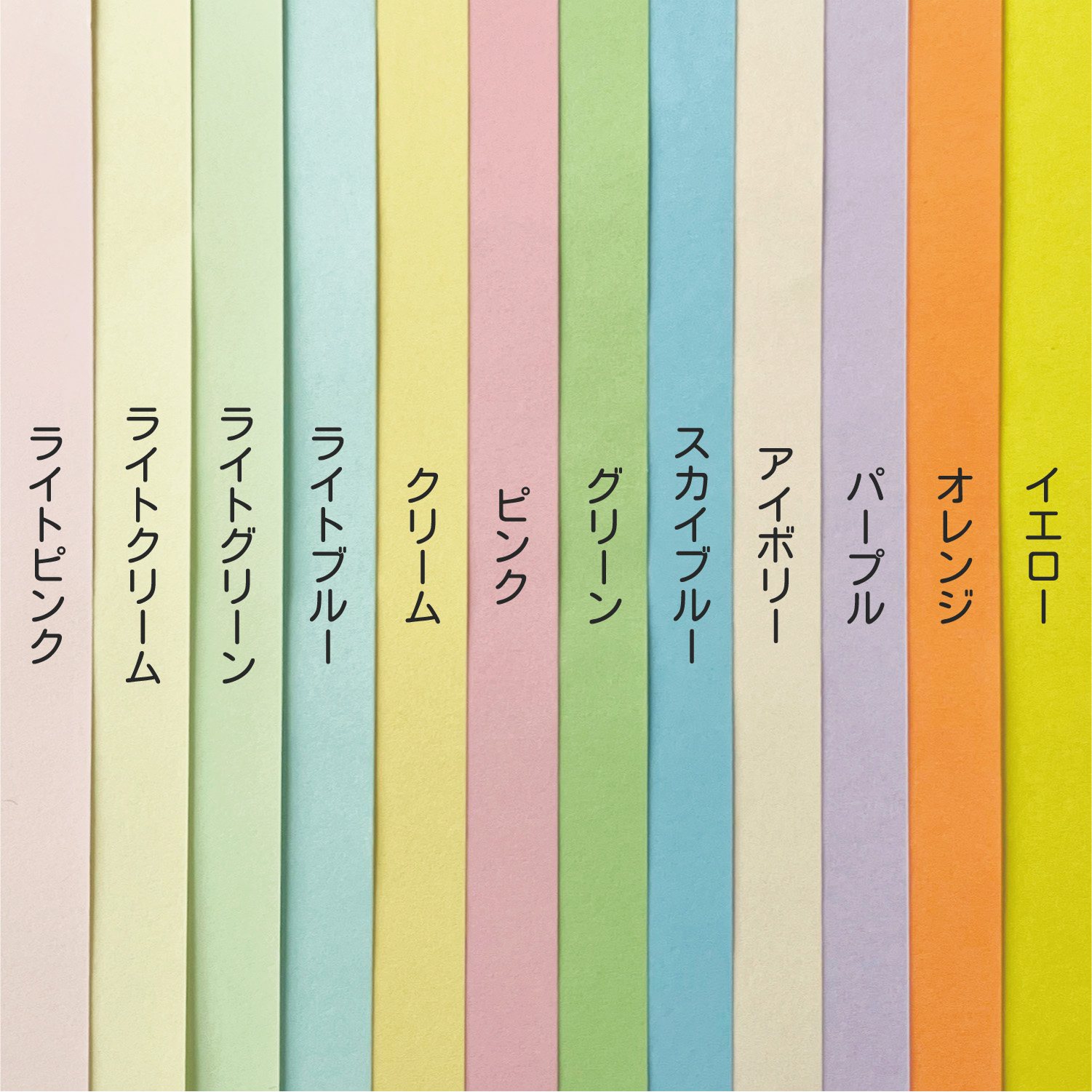 ライトクリーム・ライトピンク・ライトグリーン・ライトブルー・クリーム・ピンク・グリーン・スカイブルー・アイボリー・パープル・オレンジ・イエロー